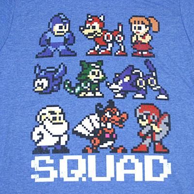 米カプコンのオフィシャルのロックマンTシャツ。ロックマンをはじめ、ラッシュやブルースなど、おなじみの仲間たちがプリントされています。