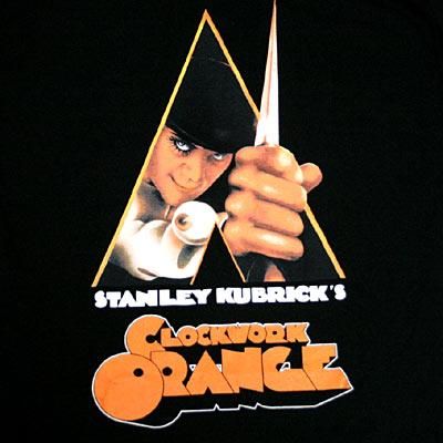 1971年に公開された、スタンリー・キューブリック監督の映画『時計じかけのオレンジ』のオフィシャルTシャツ。映画史に残る有名なデザインがそのままプリントされています。