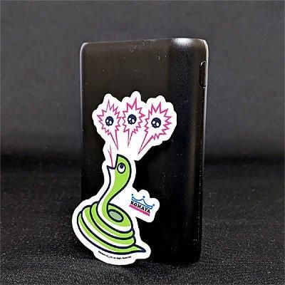 懐かしい「山のぼりゲーム」でプレイヤーの行く手を阻むヘビさんを模ったダイカットステッカー。スマホやノートパソコンなど、お好みの場所に貼ってお楽しみください。